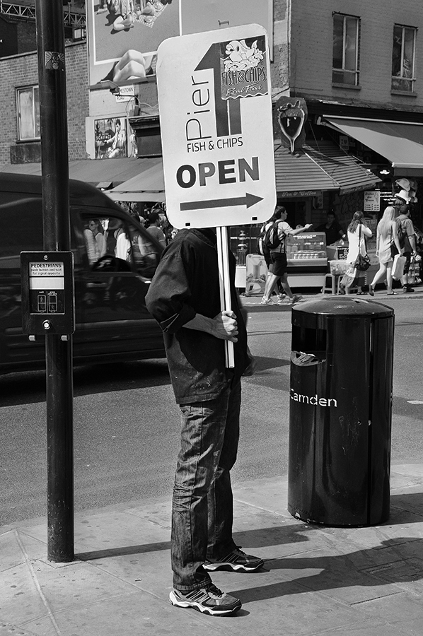 Bien por el B&N y el encuadre pero… no sé, no le veo yo el punto a ese porteador vergonzante.