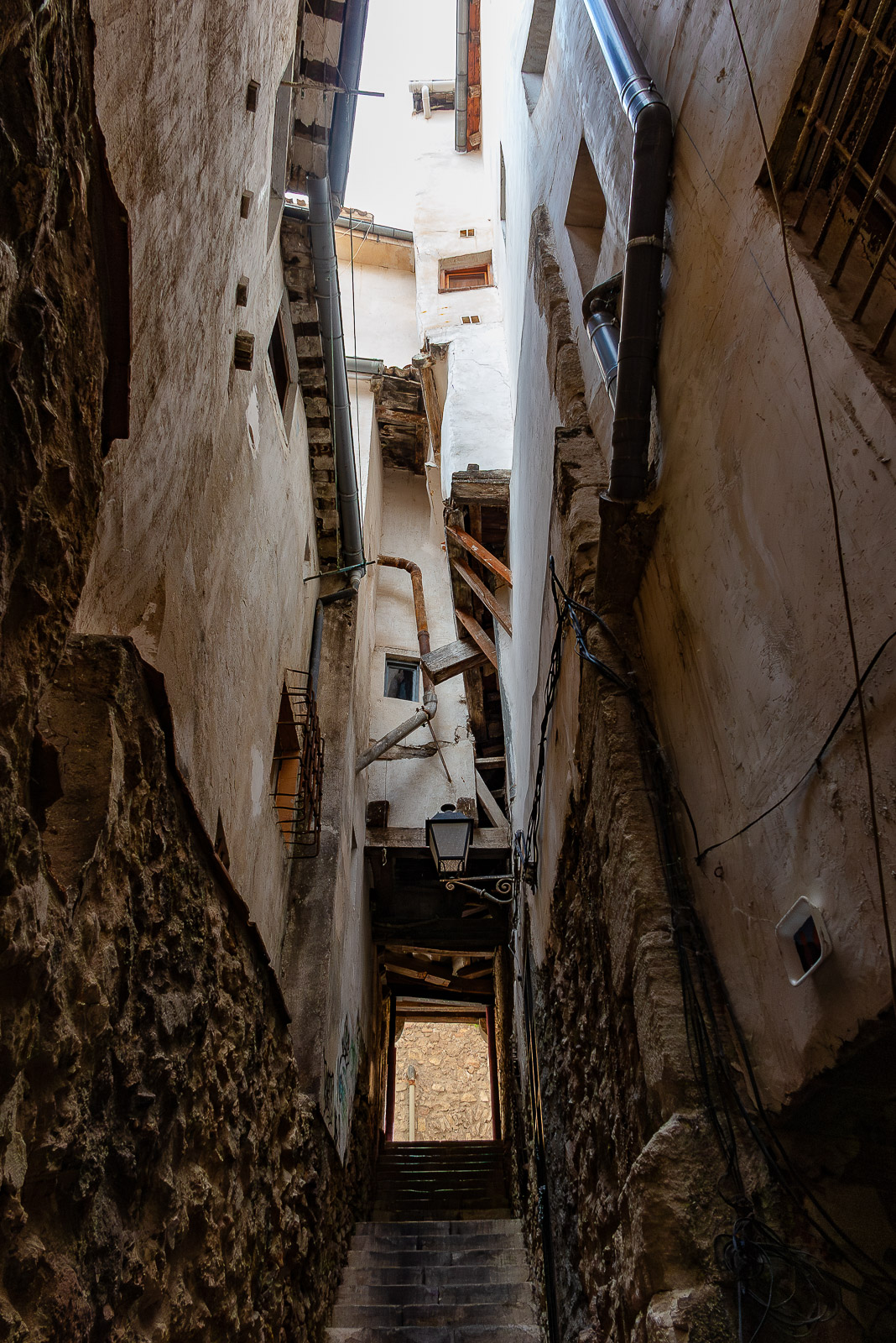 A mi me gustan las dos y me parece bastante ajustado y creíble el tema de las luces… en esos callejones estrechos donde arriba la luz es muy alta y abajo casi nada, es muy complicado y creo que lo has resuelto bien…