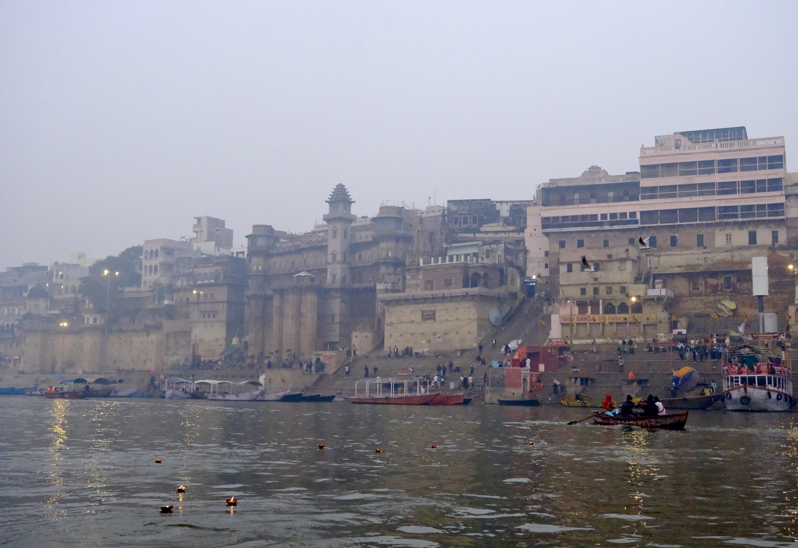 En las callejuelas adyacentes a los ghats, es posible ver las básculas de pesaje y montañas de madera almacenada.