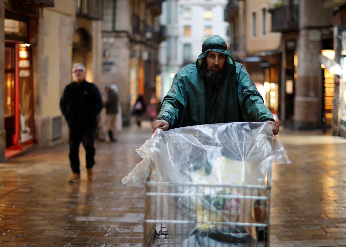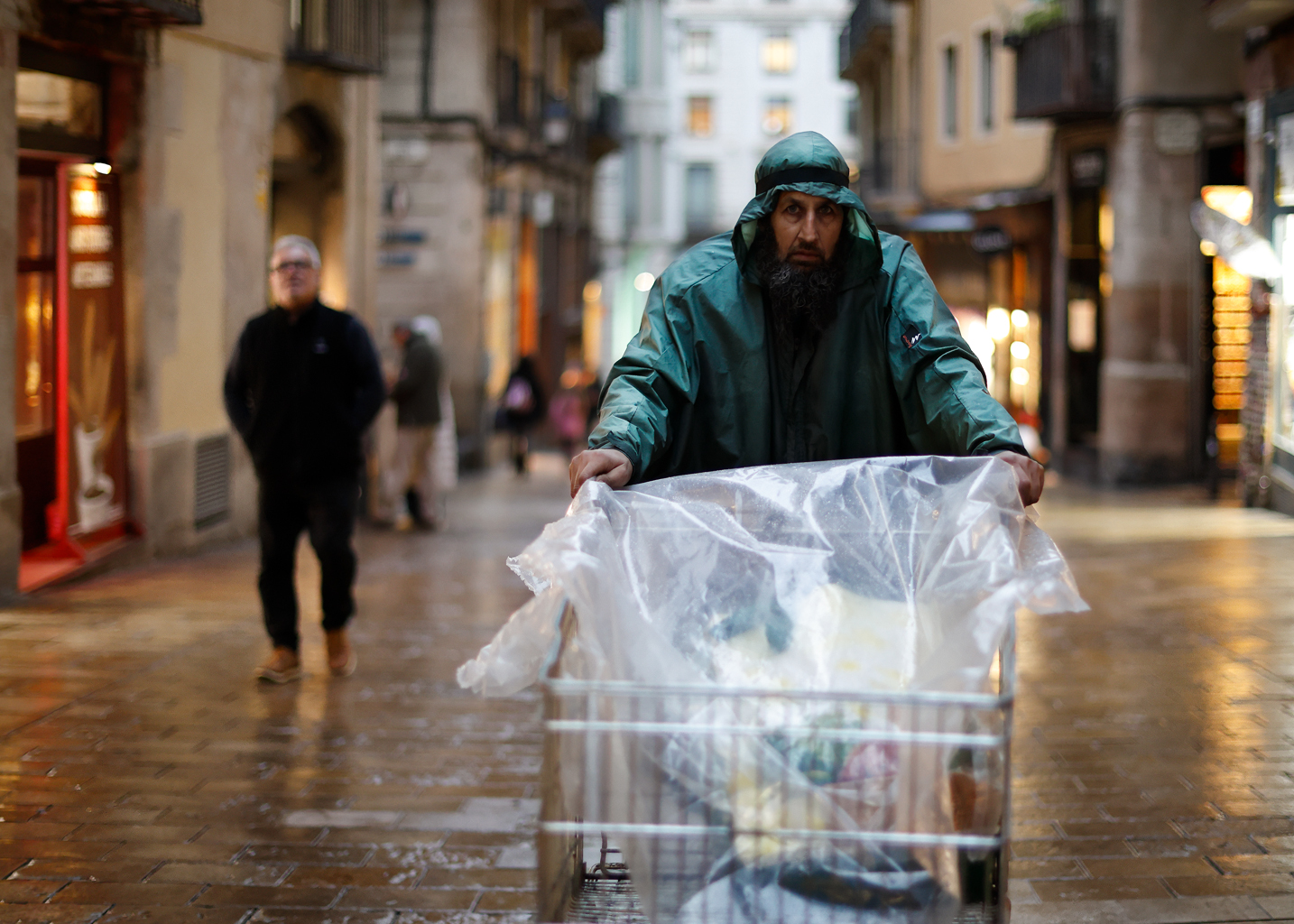 Por petición abrumadora, dejo una nueva copia con los plásticos del carro con menos brillo que protegían de la lluvia ligera la mercancía que llevaba ese buen hombre.