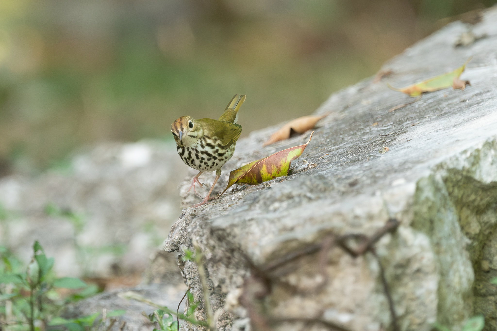 Esta ave, de características inconfundibles con ese look tipo “punk”, es un visitante invernal de la Península de Yucatán, relativamente común, pero dificil de ver porque camina por el sotobosque deteniéndose apenas para tomar un bocado aquí y allá. Se trata de un Chipe Suelero que encontré cerca de un espacio abierto, por lo que fue cosa de prepararme y tener paciencia a que se pusiera al alcance.