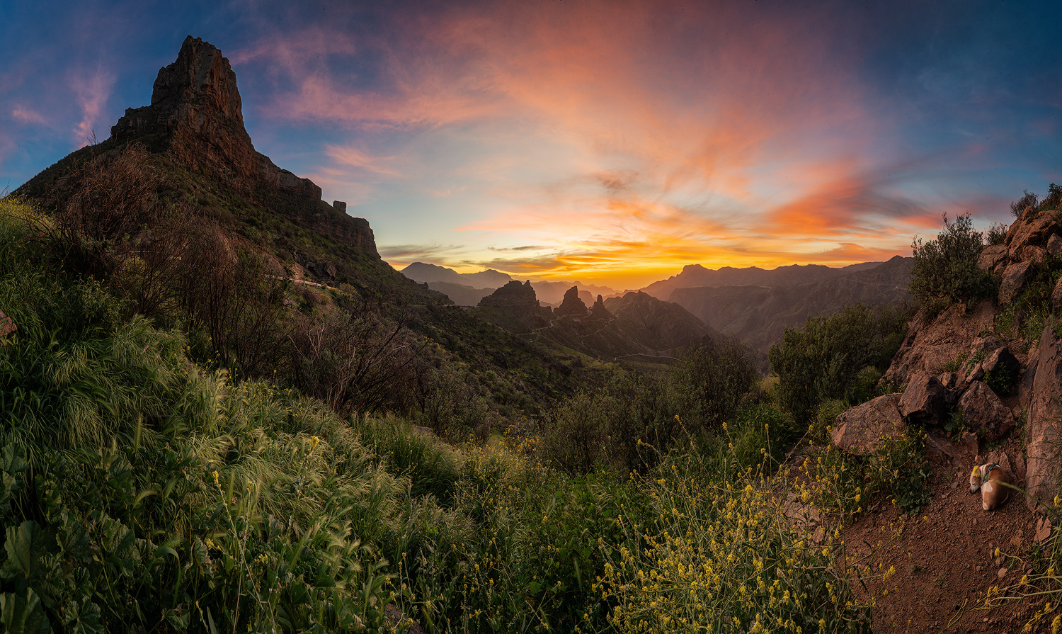 Excelente panorámica Juan.Luz y tonos de 10. impresionante ese roque de la izquierda. Y muy bueno el detalle de meter en el encuadre a firulais. Un saludo.