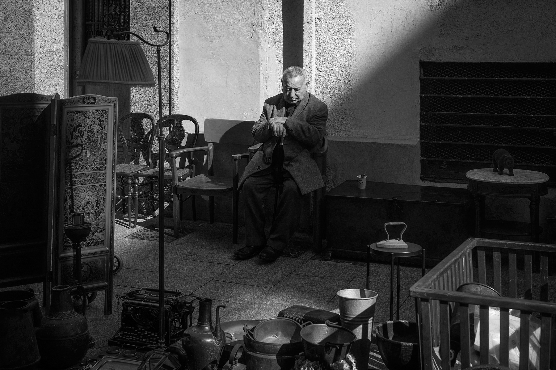 Esa línea diagonal que marca la separación entre luz y sombra te monta la fotografía por sí solo al terminar en el señor.
