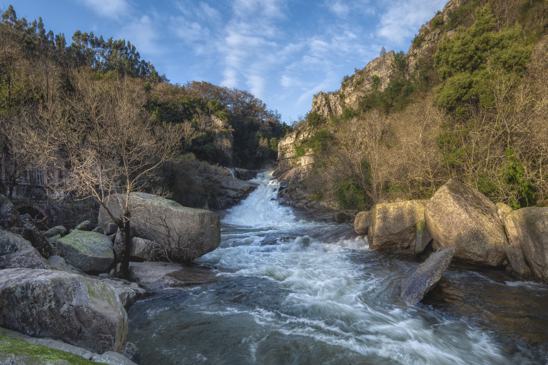 Me habría gustado verla con una exposición más prolongada para aumentar el efecto seda, pero como eso es cuestión personal, pues me quedo con las ganas. La composición que forman las rocas, me gusta mucho la verdad.