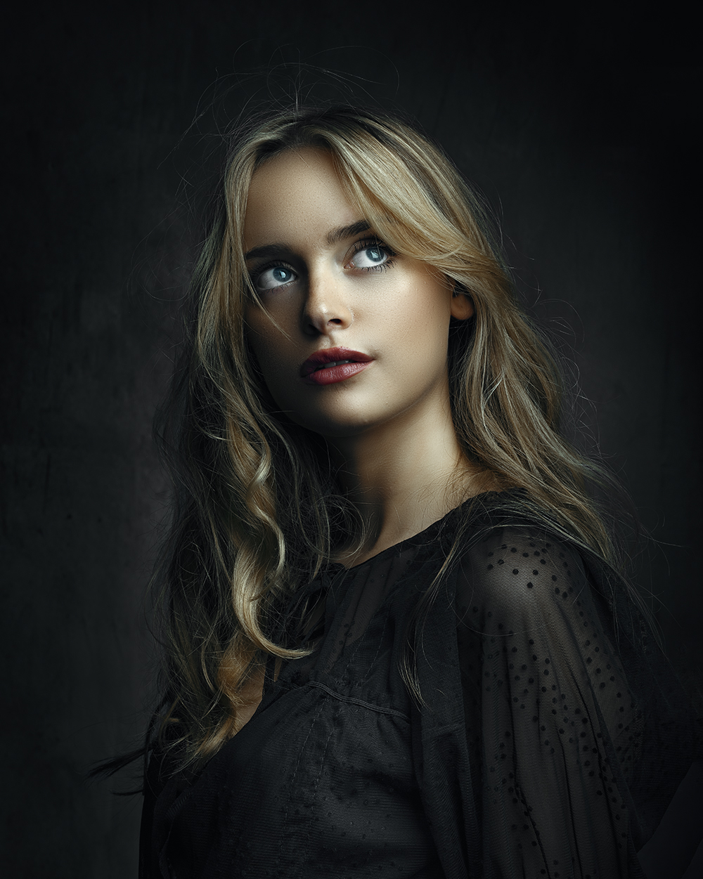 Otro detalle que me pregunto, siendo tan bueno en los retratos y procesados (me considero admiradora de tu trabajo) es porque no dejar más limpio el fondo sin esos cabellos sueltos sobre todo por arriba que son más evidentes.. otro detalle que me he fijado es en la parte inferior en el brazo, al estar pegado al cuerpo, parece que hay una curva, que se podría corregir con algo de licuar para que quedase más bonito. Y dónde el cabello te muestra con mas color, en la zona que se pega con la piel, intentaría mantener algo de diferencia.. ese mechón a la izquierda creo que tampoco aporta, lo eliminaria directamente. Bueno voy escribiendo según veo detalles, creo que pequeñas cosas que harían mejor si cabe el retrato que presentas.