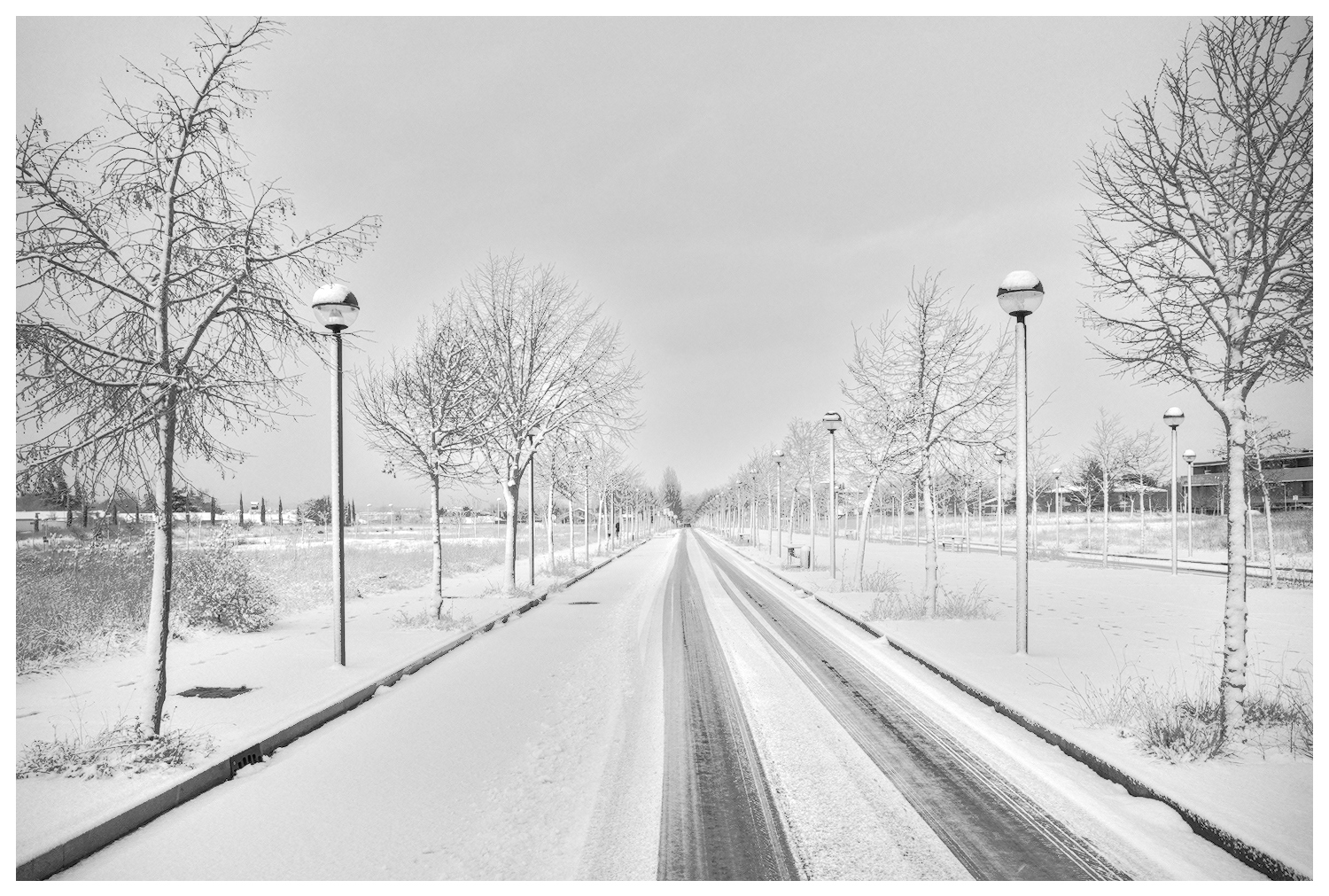 Ya te lo han dicho todo, me gusta mucho estas líneas de fuga pero a la nieve le falta contraste. Saludos.