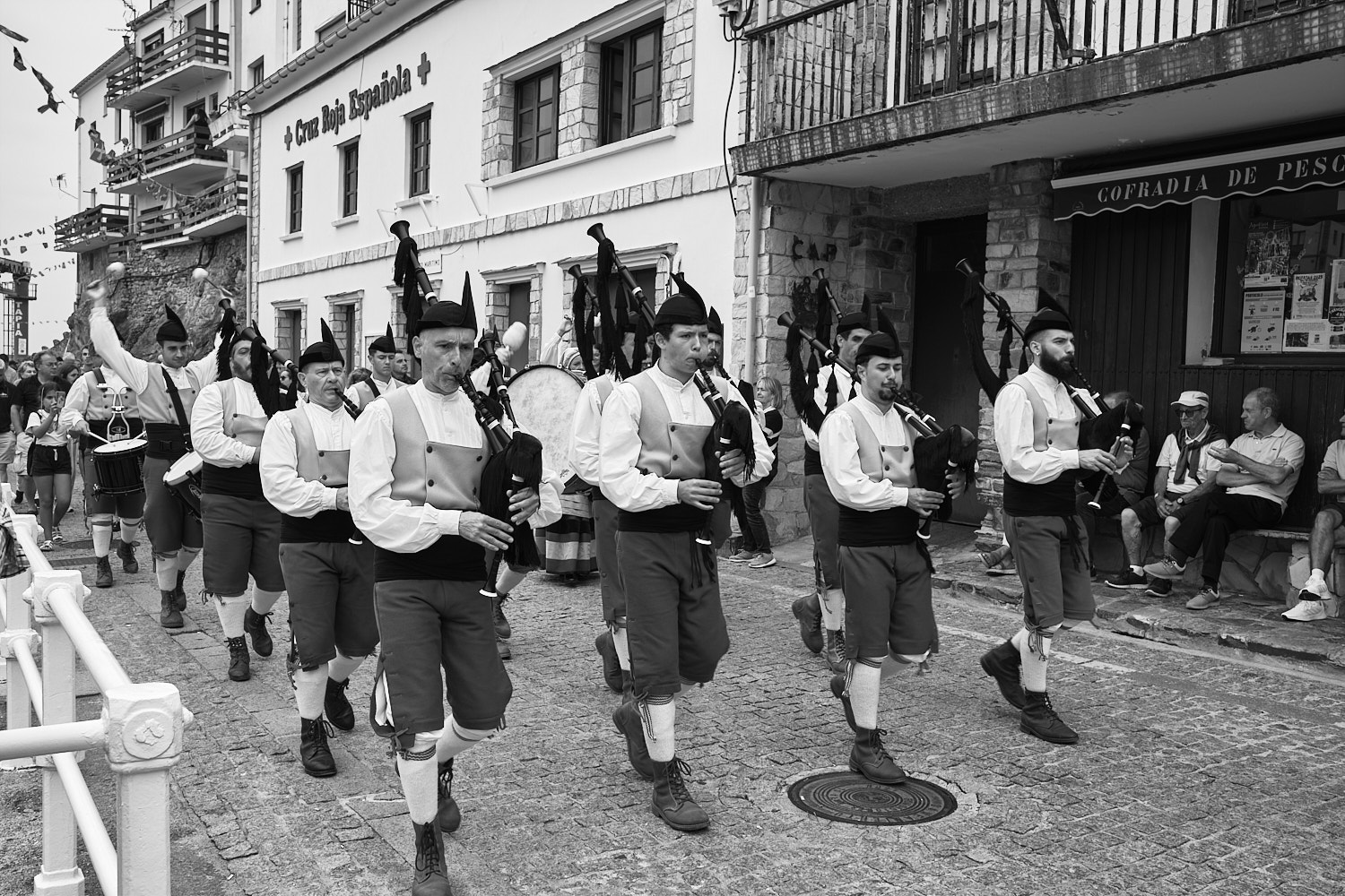 La alcantarilla (pisándola el gaitero), la barandilla blanca, los paisanos en los bancos, el edificio con el cartel de La Cruz Roja, los balcones… hasta el niño del final de la línea… todo genial.