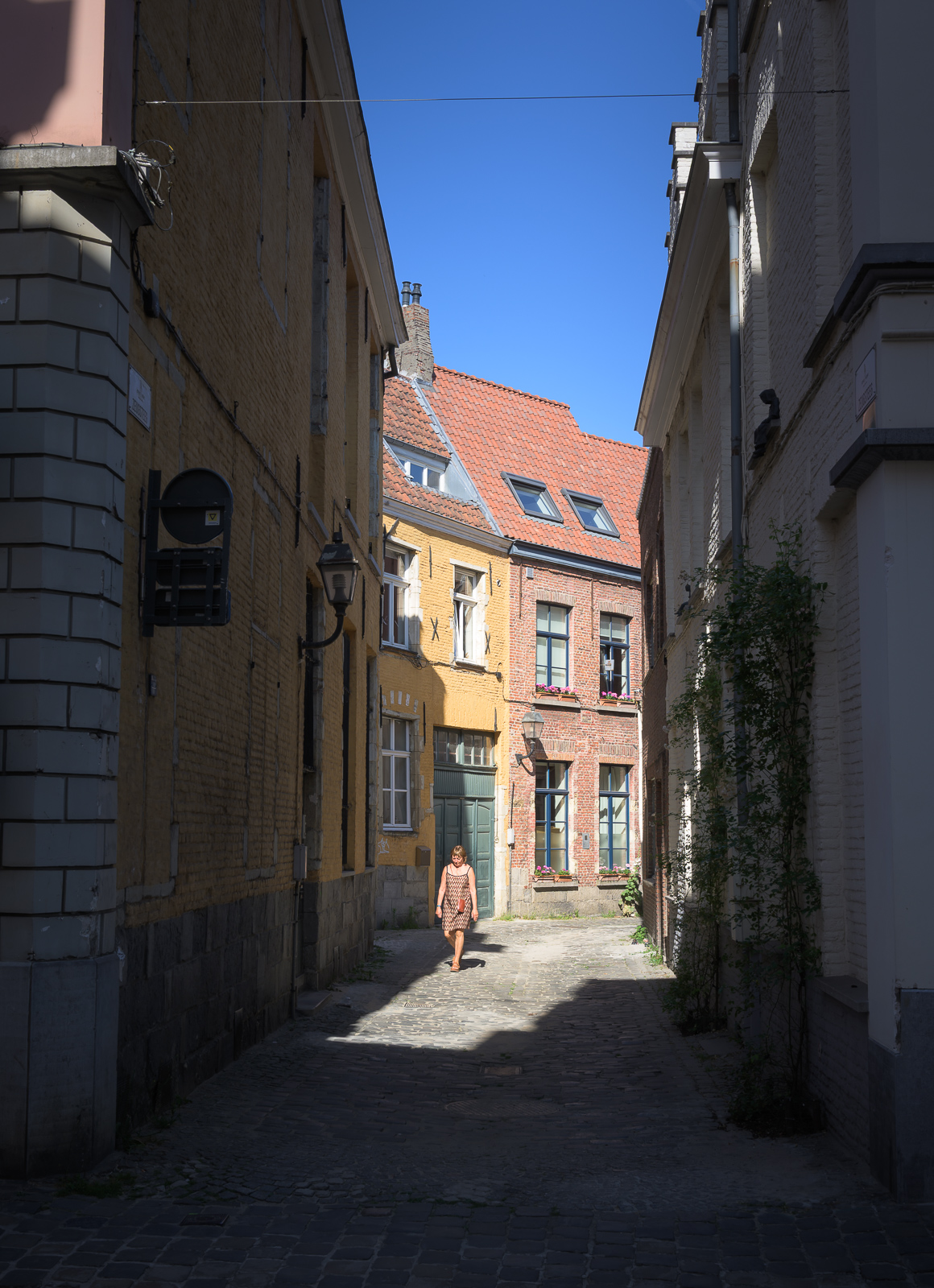 Una calle cualquiera de Gante, con sus colores, sus típicas construcciones y sus gentes.