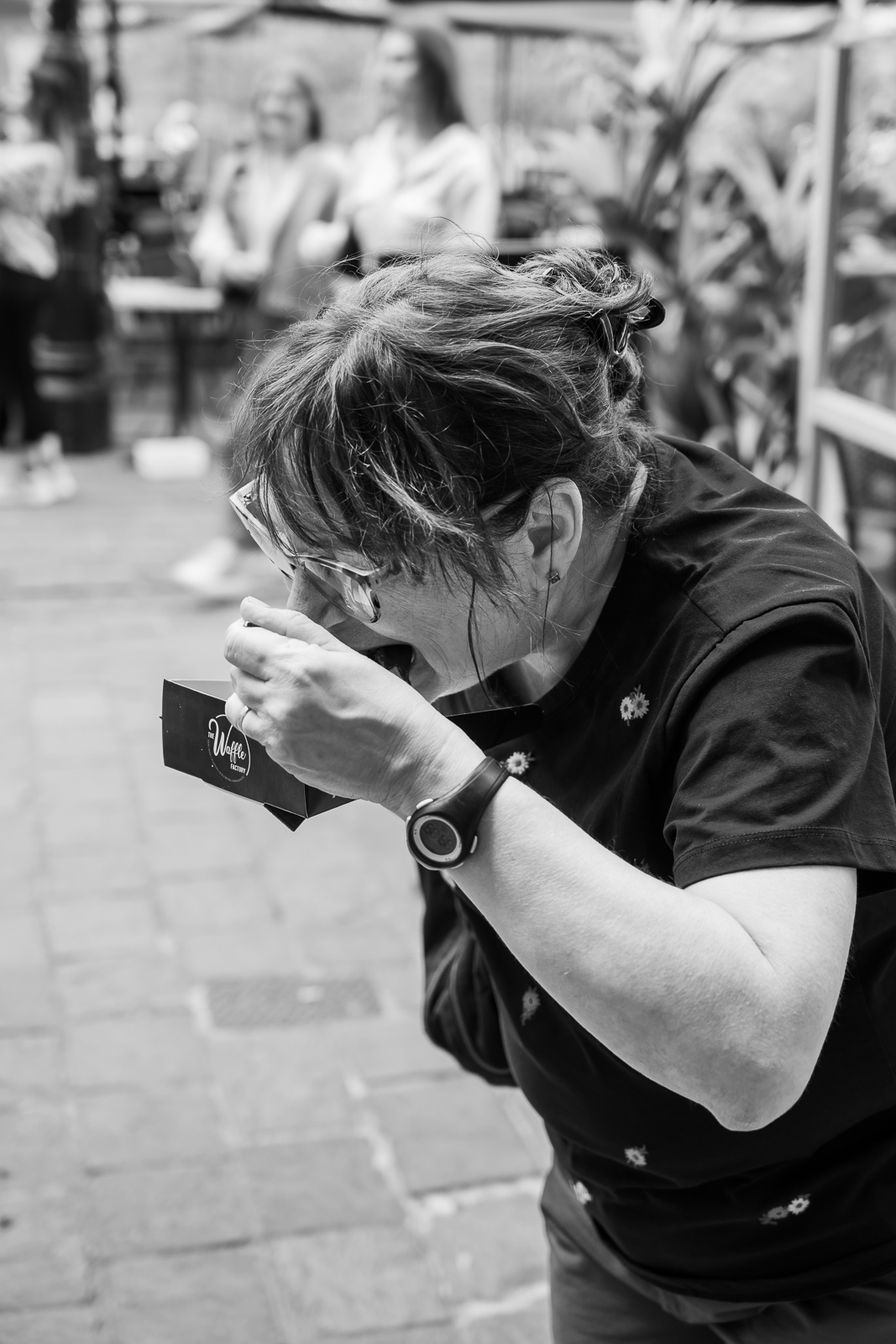 Se me abrió el apetito al ver gusto con el que se están comiendo los gofres. Habrá que ir a Bélgica para probarlos. Saludos.