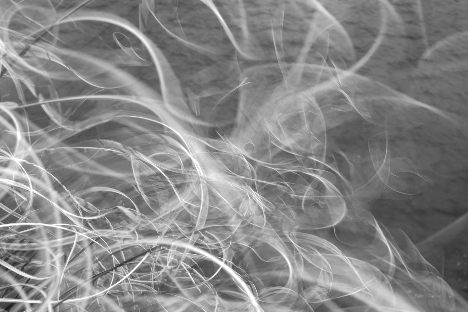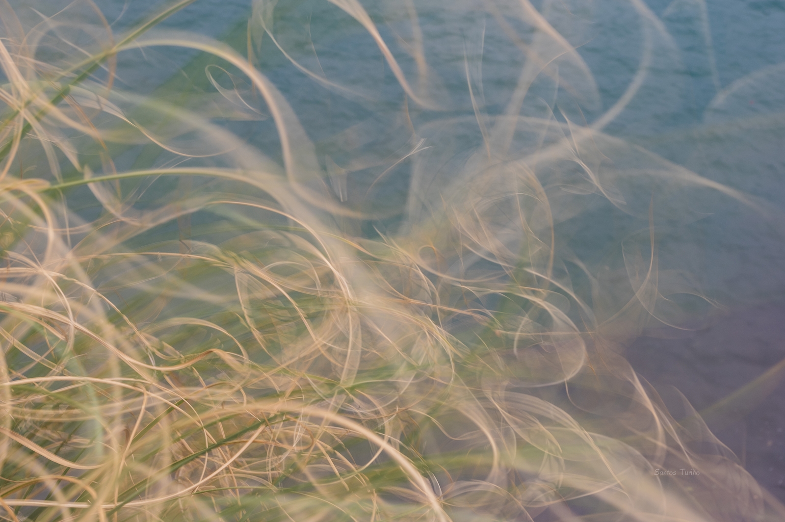 En días ventosos cuando puedo voy a pasear por el muelle de hierro donde en uno de sus muros han crecido plumeros de la Pampa. Todavía son jóvenes y se componen de hojas onduladas. El viento las agita y aproveché unos cuantos disparos para sacar partido del viento y de la planta.