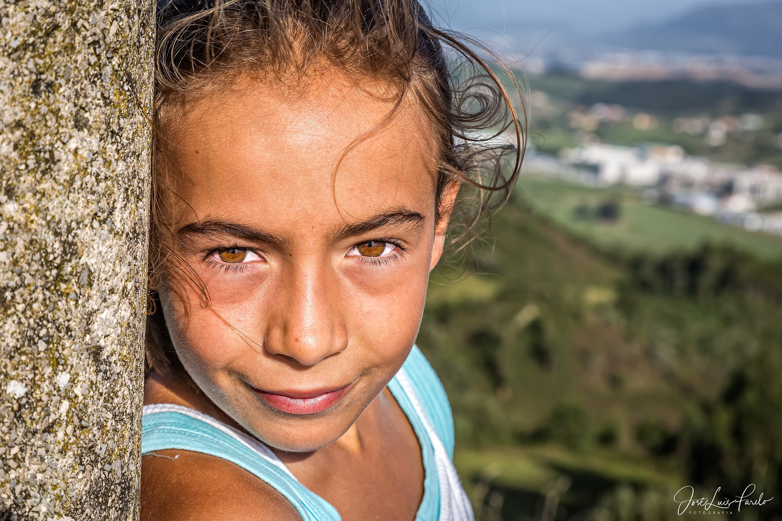 Hola José Luis, de esta foto, básicamente me gusta el fondo y su desenfoque, por el resto, veo su piel muy cálida, saturada, creo que yo hubiera bajado un poco el ángulo de la cámara, no hubiera cortado su cabeza (o la cortaría sobre la base del pelo o a mitad de la frente, no así) y si cortaría un poco sobre nuestra izquierda, me distrae tanta pared y la cantidad de detalle que se le ve. Disculpa si soy algo brusco, pero no le encuentro sentido a andar con embagues. Saludos!