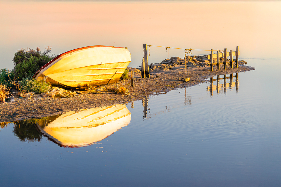 Bien vista y bien aprovechado esa paisaje, a mi me gusta tal cual. En el caso de ponerme muy quisquilloso y tocar algo la ponía en un 16:10 recortado por abajo para que haya la misma distancia entre la barca y el corte que vemos arriba que creo que en el reflejo hay un pelín más pero eso ya es por tocar un poco las pelotas