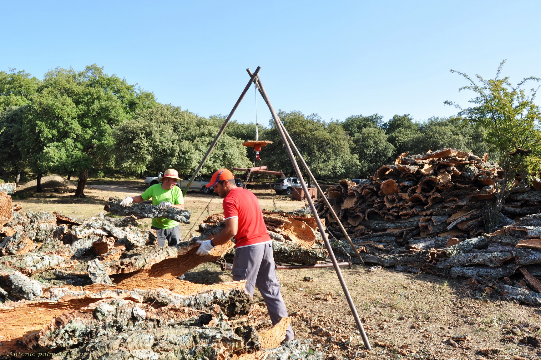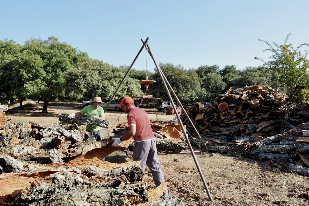 Una foto 100% documental, me parece muy útil de cara a futuro realizar este tipo de tomas. No sé por cuánto tiempo se seguirá realizando la recolección del corcho, actividad que presencié con interés en la zona centro de Portugal. El procesado lo veo bien pese a la durísima luz que predominaba, has salvado la toma logrando detalle en toda ella.
