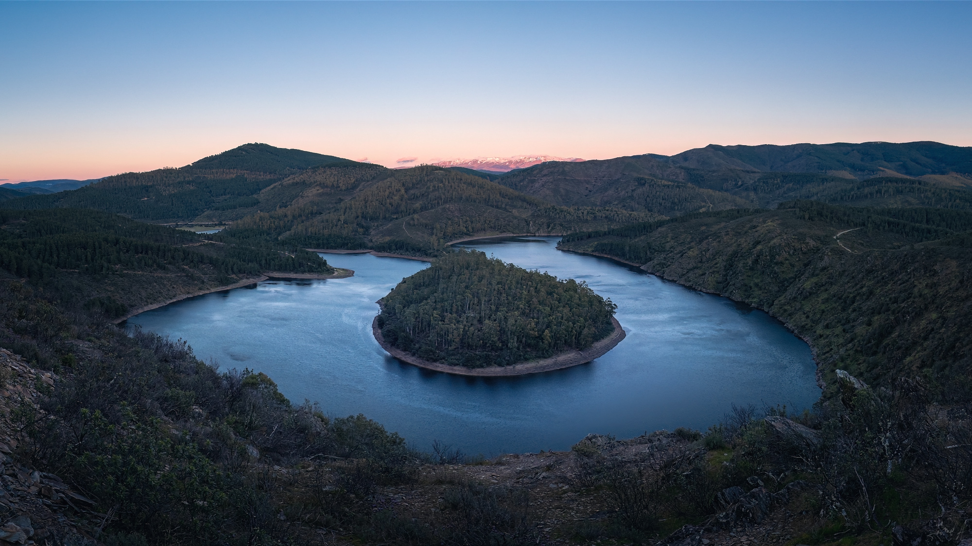 Meandro del Melero, alucinante la vista al atardecer, al fondo la sierra de Béjar…