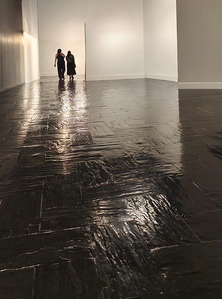Que bien entendiste esos suelos tan líquidos y a los visitantes caminando por las aguas.