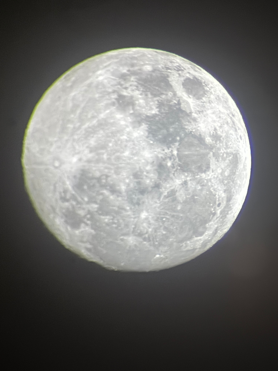 Una imagen que para tratarse de un plenilunio, carece ampliamente de detalles, zonas quemadas y con exceso de aberraciones cromáticas, tampoco comentas equipo o parámetros empleados, en fin,espero que la próxima pueda comentarte algo más positivo. Pero no dejes de intentarlo.