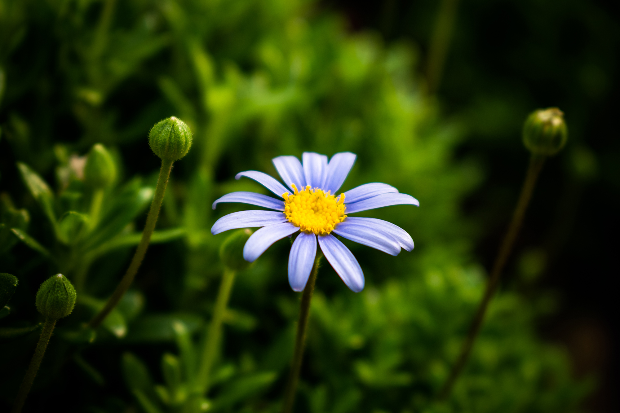 Me gusta el ambiente que rodea a la fotografía y el contraste de color, muy bien iluminada la margarita… Que la fuerza te acompañe!
