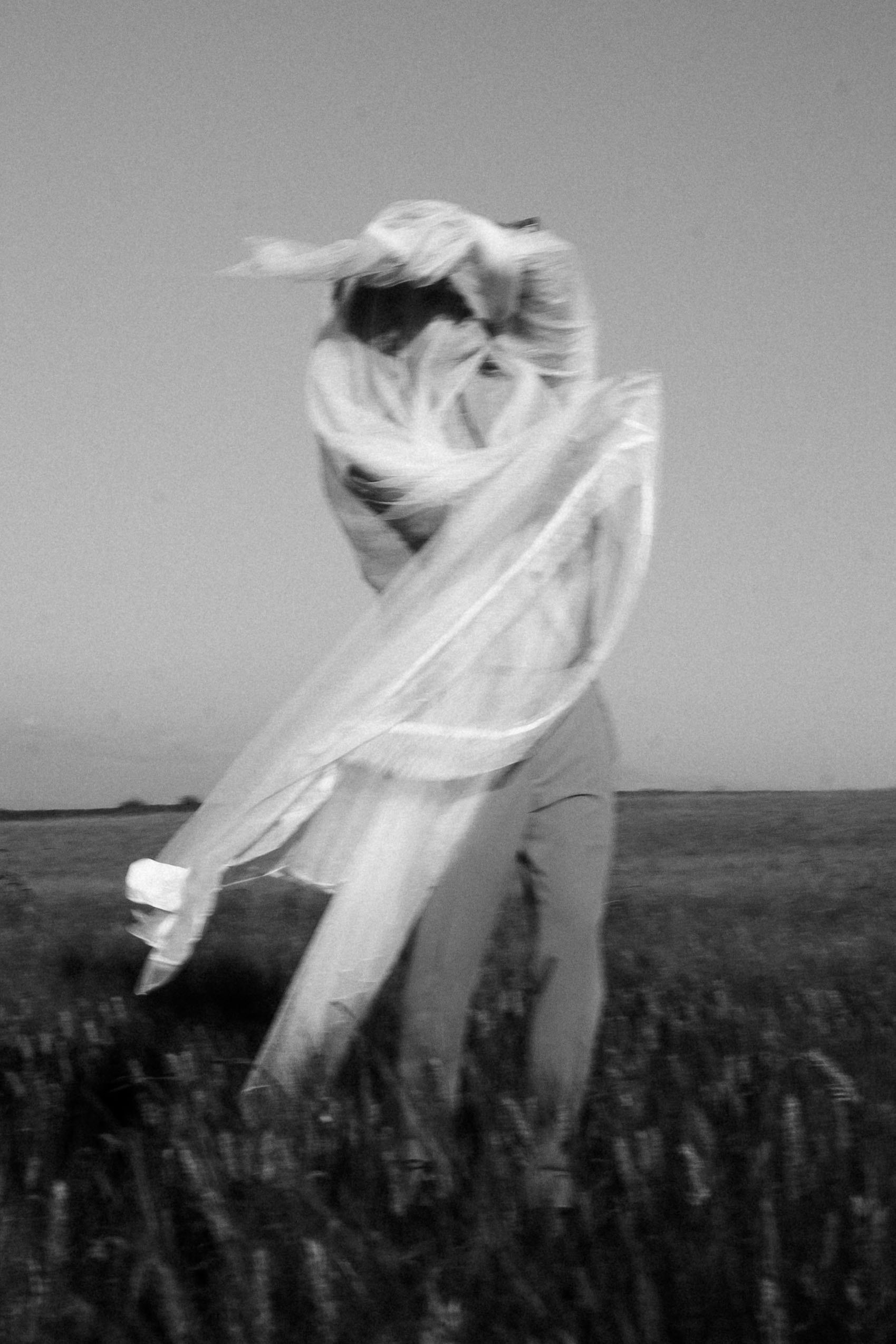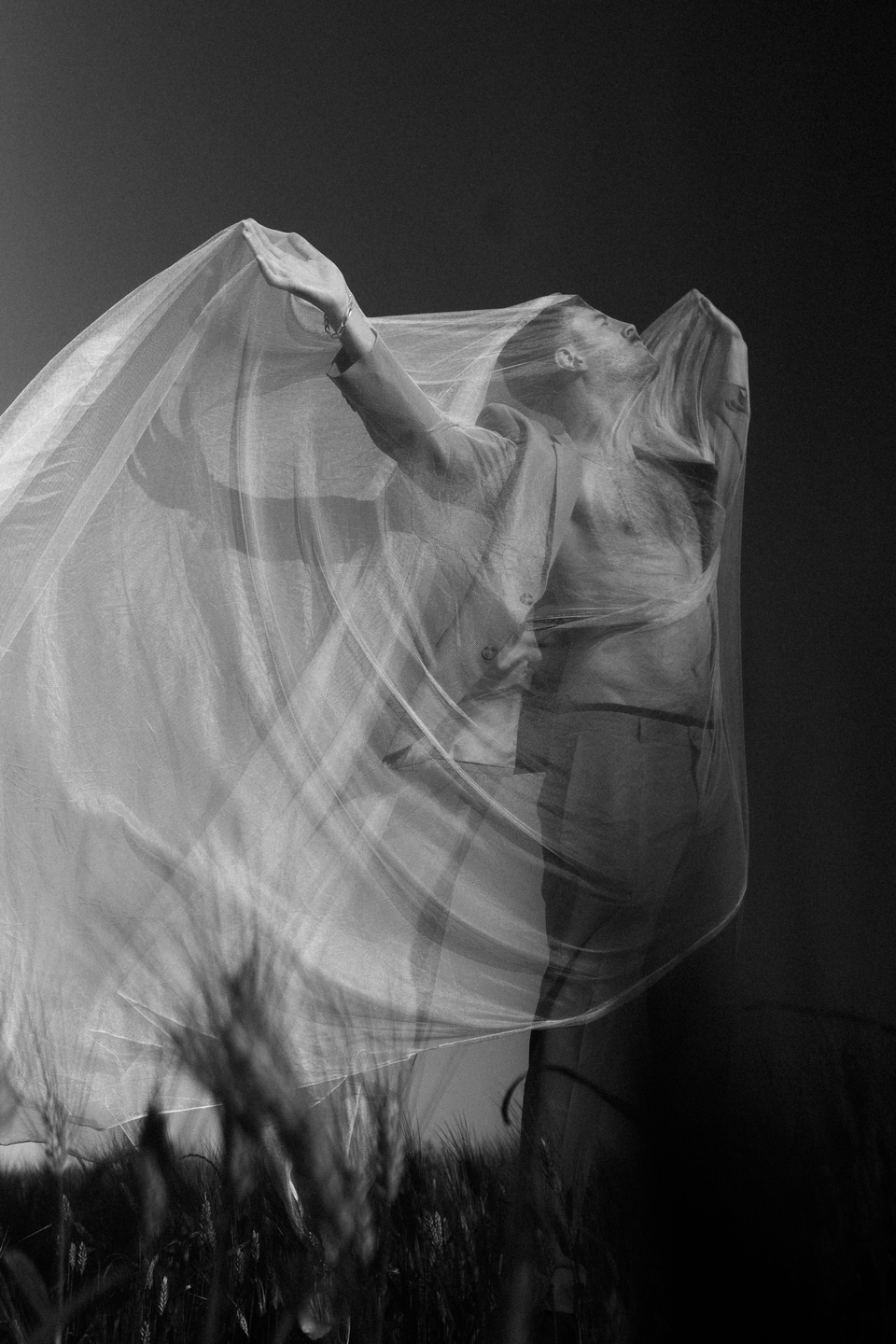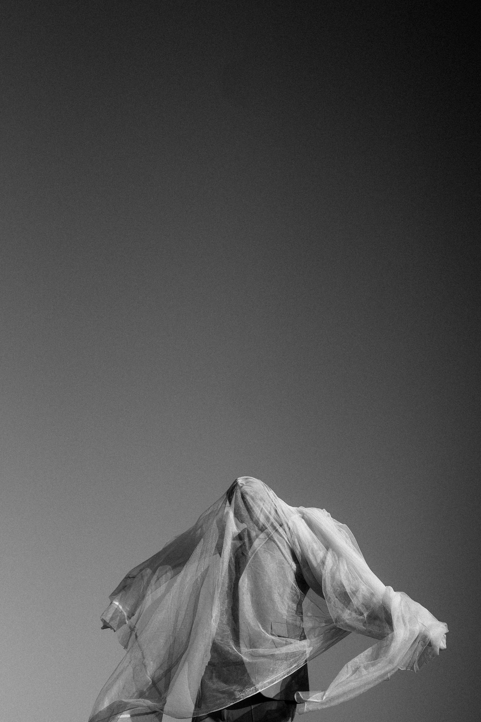 Os dejo esta serie. Un hombre dejándose llevar con un velo. Experimentando como siempre. En ellas, mucho grano en la edición, prisma, desenfoques, blanco, negro, grises. Todo a propósito.