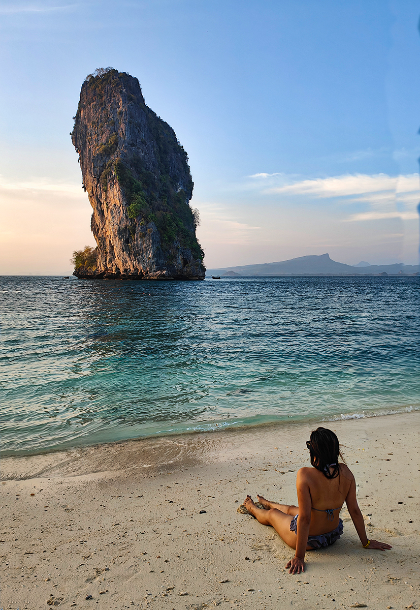 Me encanta. No cambiaría nada. Yo en la foto veo un cruce de miradas entre ella y la piedra, una suerte de tensión no resuelta. Qué sé yo.