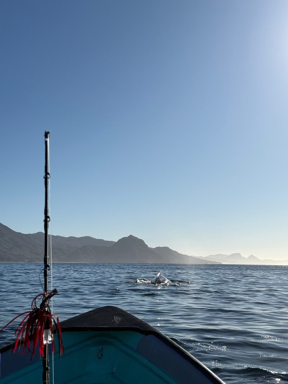 No vemos ninguna acción de pesca, se podría decir que se va siguiendo el rastro de la ballena.