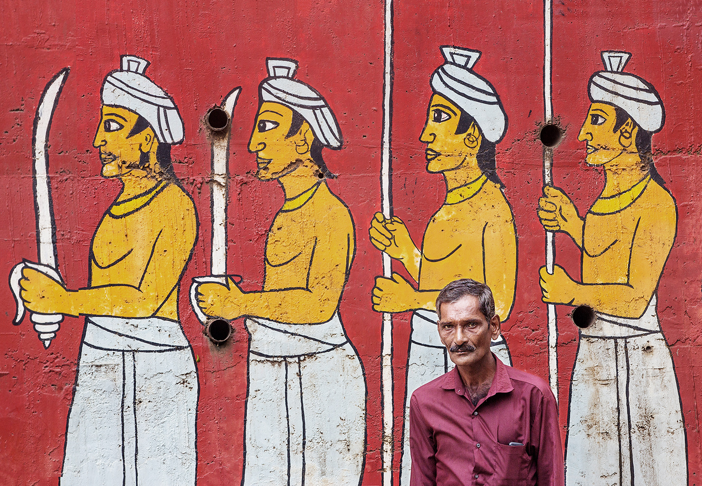 He ampliado y la imagen gana una barbaridad mirándola a buen tamaño. Me gusta como el personaje se integra, casi se mimetiza, con la pintura de la pared.