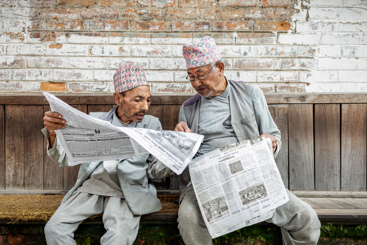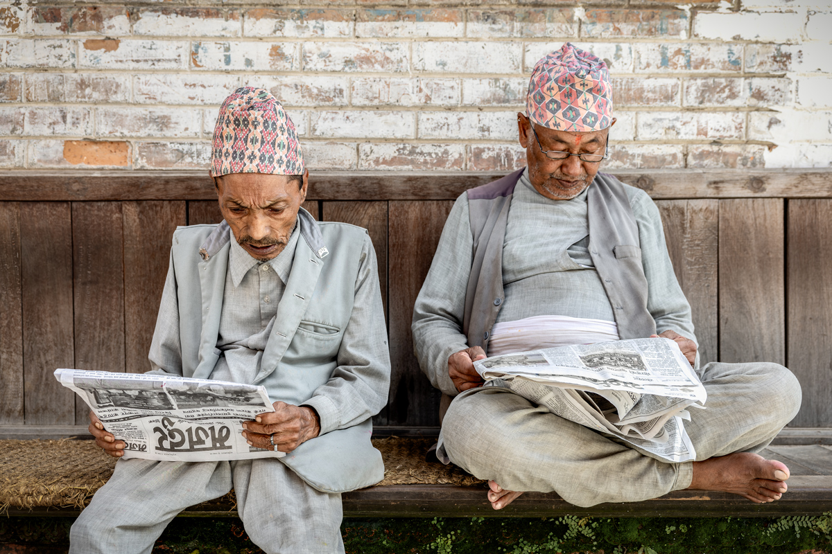 Que majetes, se han repartido el periódico y se deleitan en su lectura.