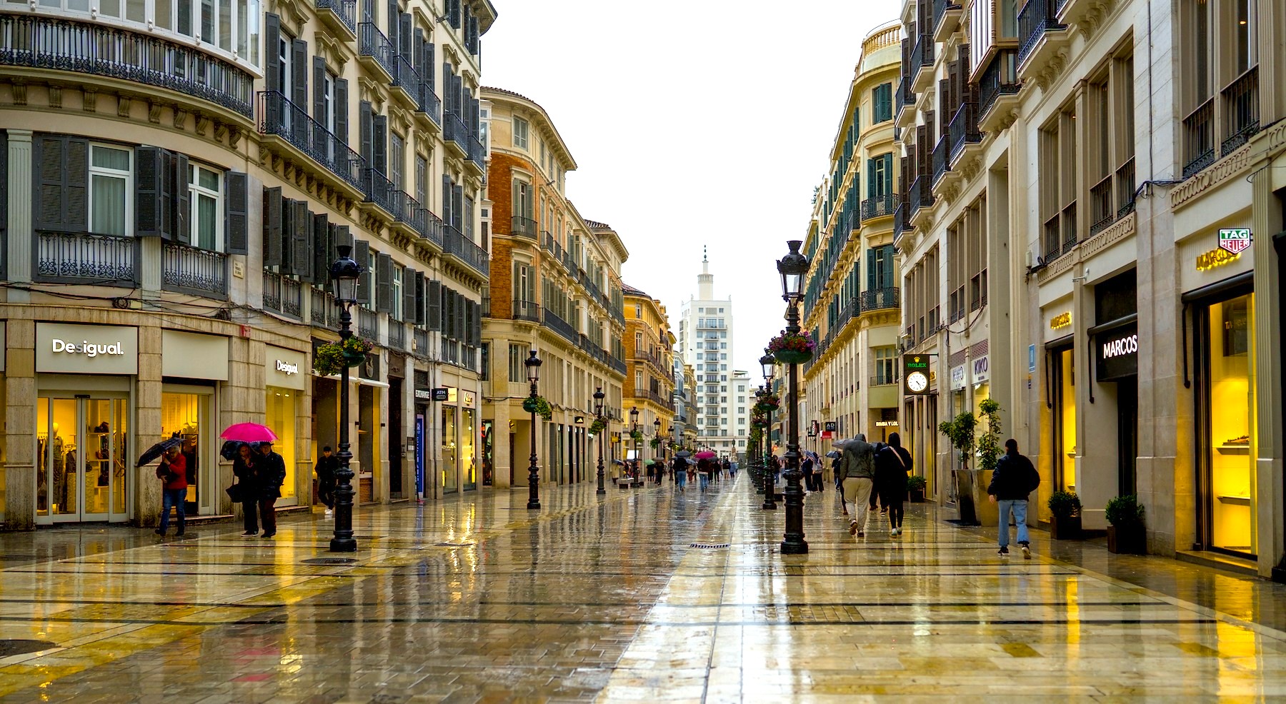 Inconfundible calle Larios. Profundidad envidiable, pero creo que admite un poco más de contraste, los edificios que están como el día, un poco grises.