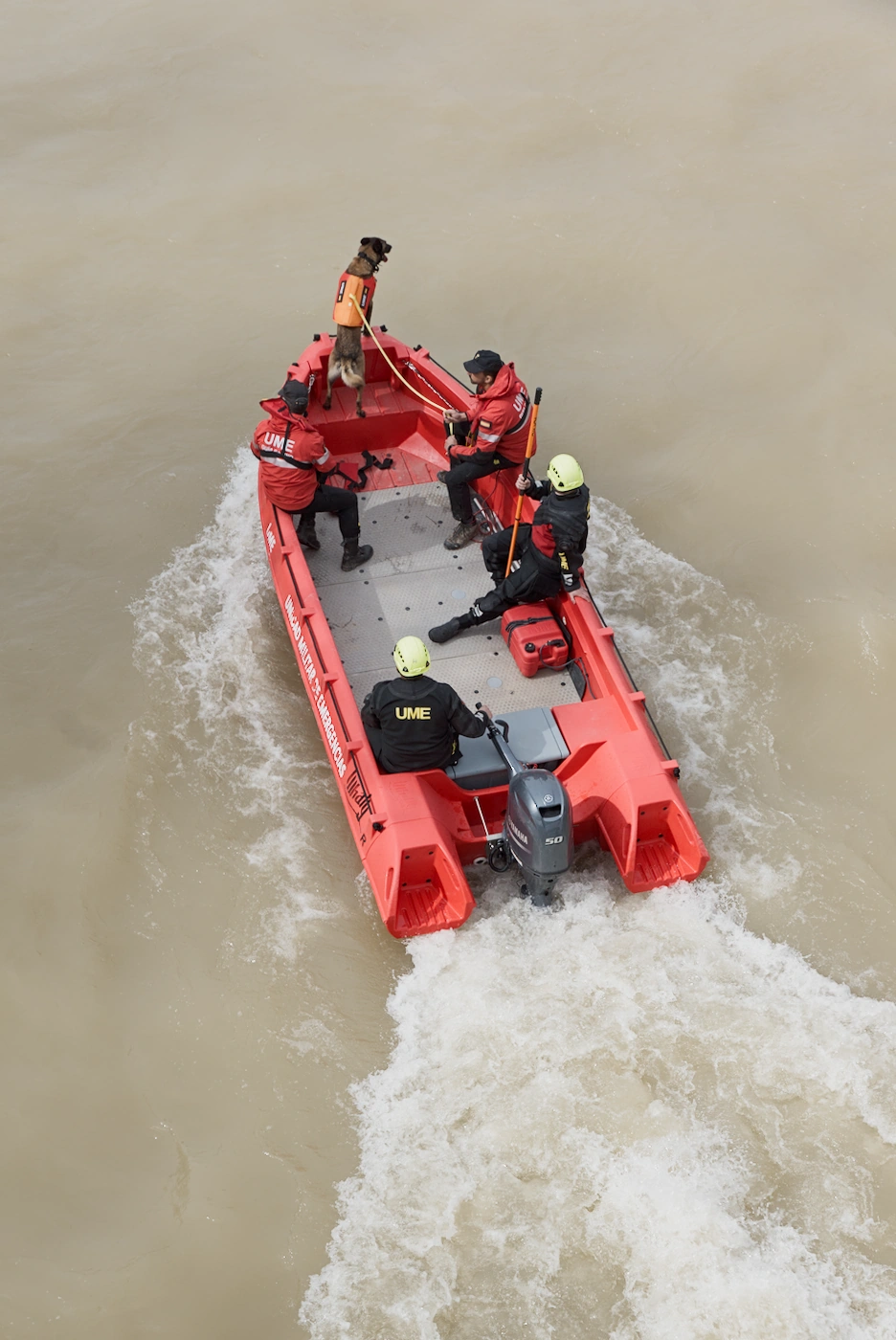 Búsqueda de un joven desaparecido con la ayuda de perros especialistas y sus guías caninos. Otra área de actuación es el rescate de víctimas de avalanchas.