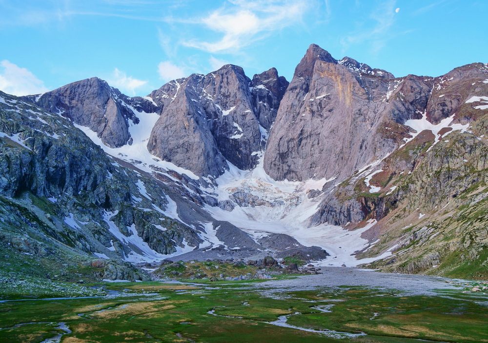 Posiblemente la visión mas majestuosa de Pirineos: la Cara Norte del Vignemale. Más imágenes en: https://altarutapirenaica3-50.blogspot.com/2020/03/alta-ruta-pirenaica-28-etapa-de-san.html